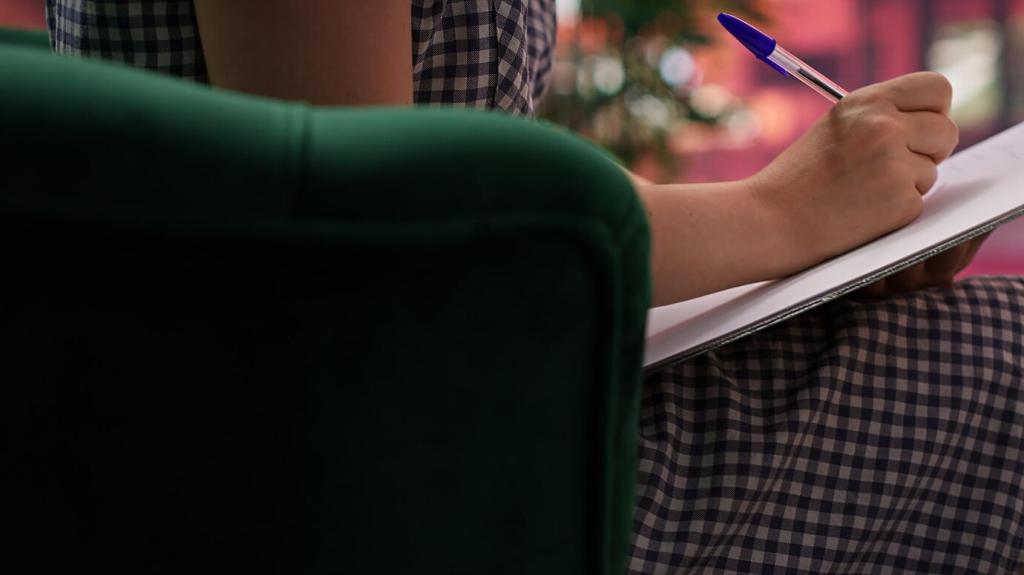 Beschreiben Sie, wie das Morgenlicht den Staub tanzen lässt und die Abendsonne Messing warm färbt. Nennen Sie Schattenlinien, Reflexe und Blickachsen. Erklären Sie, warum ein Vorhang die Stimmung wie Musik moduliert. Fragen Sie Leser nach ihrer liebsten Tageszeit im Wohnzimmer und laden Sie sie ein, Fotos zu teilen.